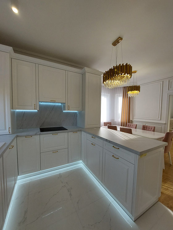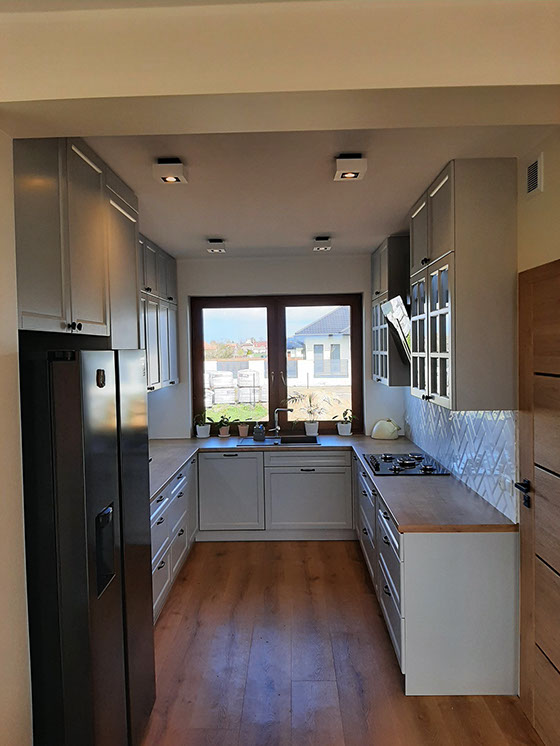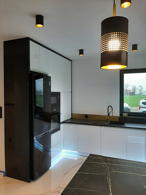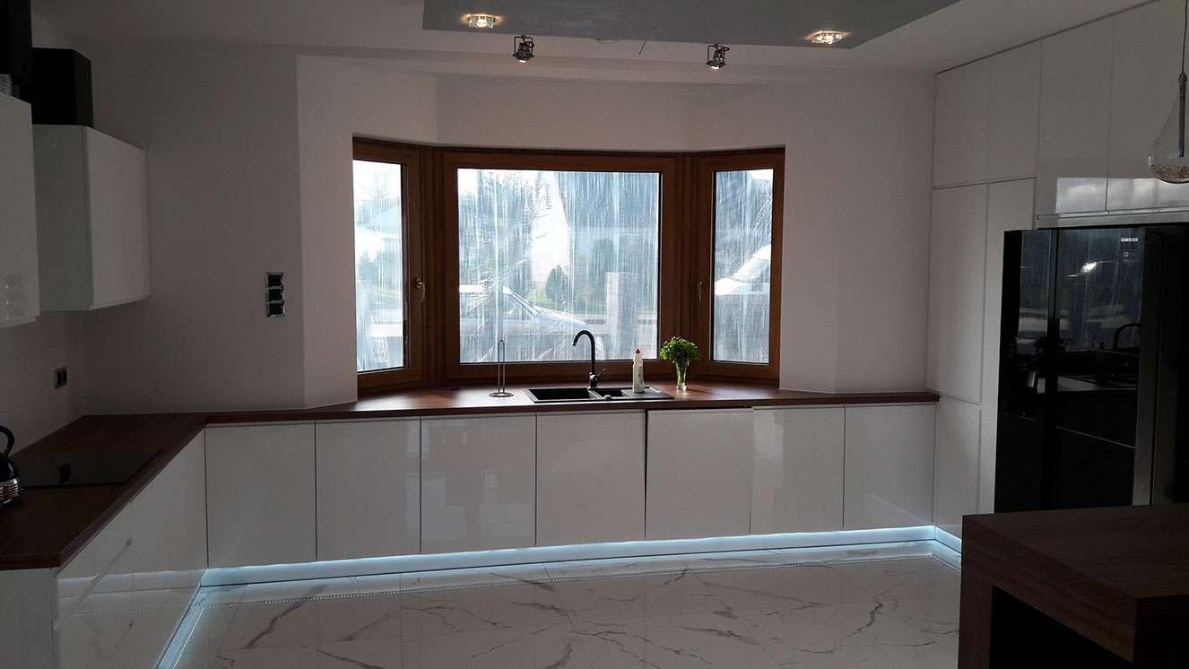 Oferujemy pełną obsługę z wykonaniem mebli; tj. pomiar, projekt, fachowe doradztwo, dobór sprzętu AGD, transport i montaż. Indywidualne podejście do każdego klienta gwarantuje efekt w postaci dobrze zaprojektowanej i wykonanej kuchni oraz innych mebli. Dzięki fachowemu doradztwu i profesjonalnemu projektowi, prezentowanemu techniką komputerową "SKETCH-up" klient ma szybką wizję mebli. W ofercie posiadamy bogatą gamę surowca do produkcji mebli. Oferujemy fronty z drewna, MDF, fornir, lakier połysk, lakier mat, front aluminium. Kompozycja, jak i dobór kolorów pozostawiamy Państwu. Blaty robocze natomiast stanowią dopełnienie całości wykonanych mebli, barwa i struktura jest wyborem indywidualnym, jednakże my służymy fachowym doradztwem. Jesteśmy w stanie zapewnić Państwu obsługę na najwyższym poziomie. Nasi pracownicy odpowiadający za kontakt z klientem są otwarci, pomocni i chętni do współpracy.